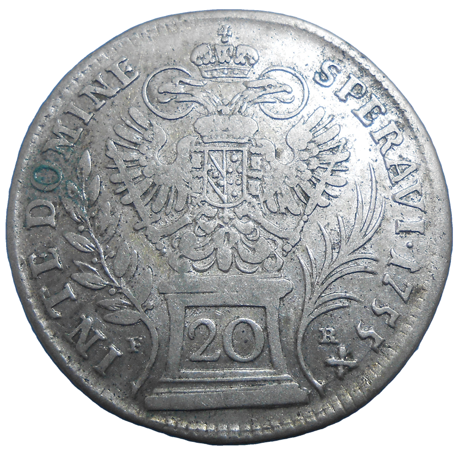 František Lotrinský 20 Grajciar 1755 PR. Stará, strieborná, obehová minca Františka Lotrinského v hodnote 20 grajciaru z roku 1755 – Numizmatický obchod