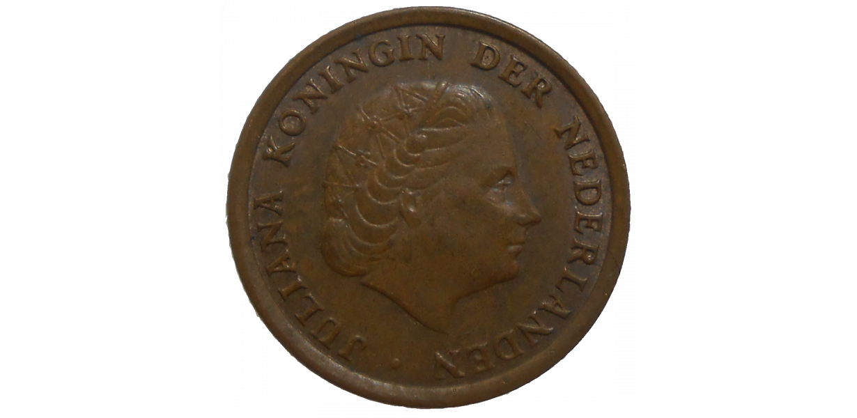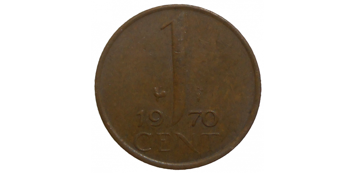 Stará, bronzová, obehová minca Holandska v hodnote 1 Centu z roku 1970.