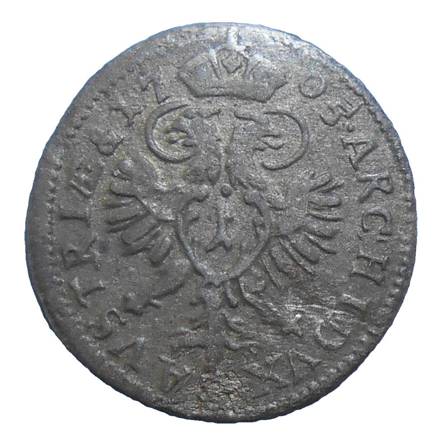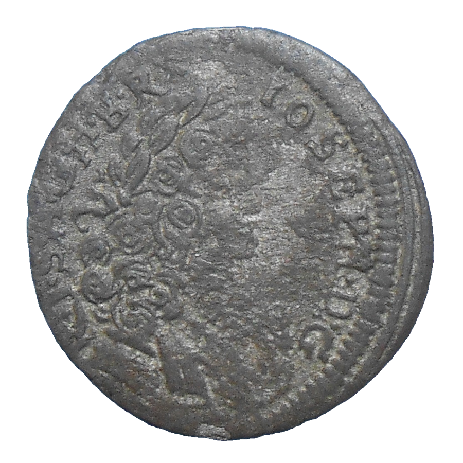 Stará, strieborná, obehová minca Jozefa I. Habsburského v hodnote 1 grajciaru z roku 1705.
