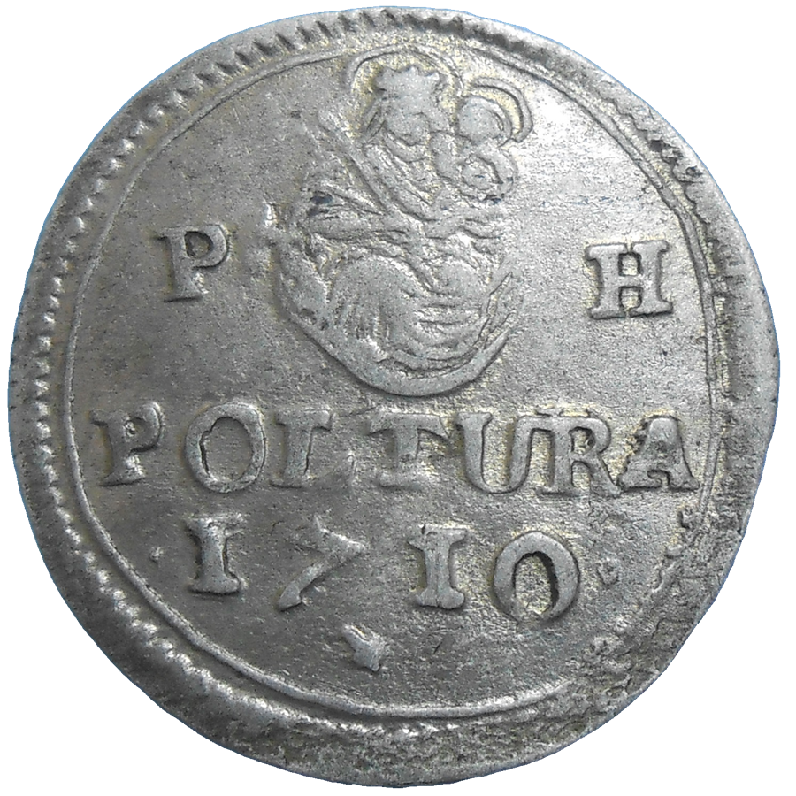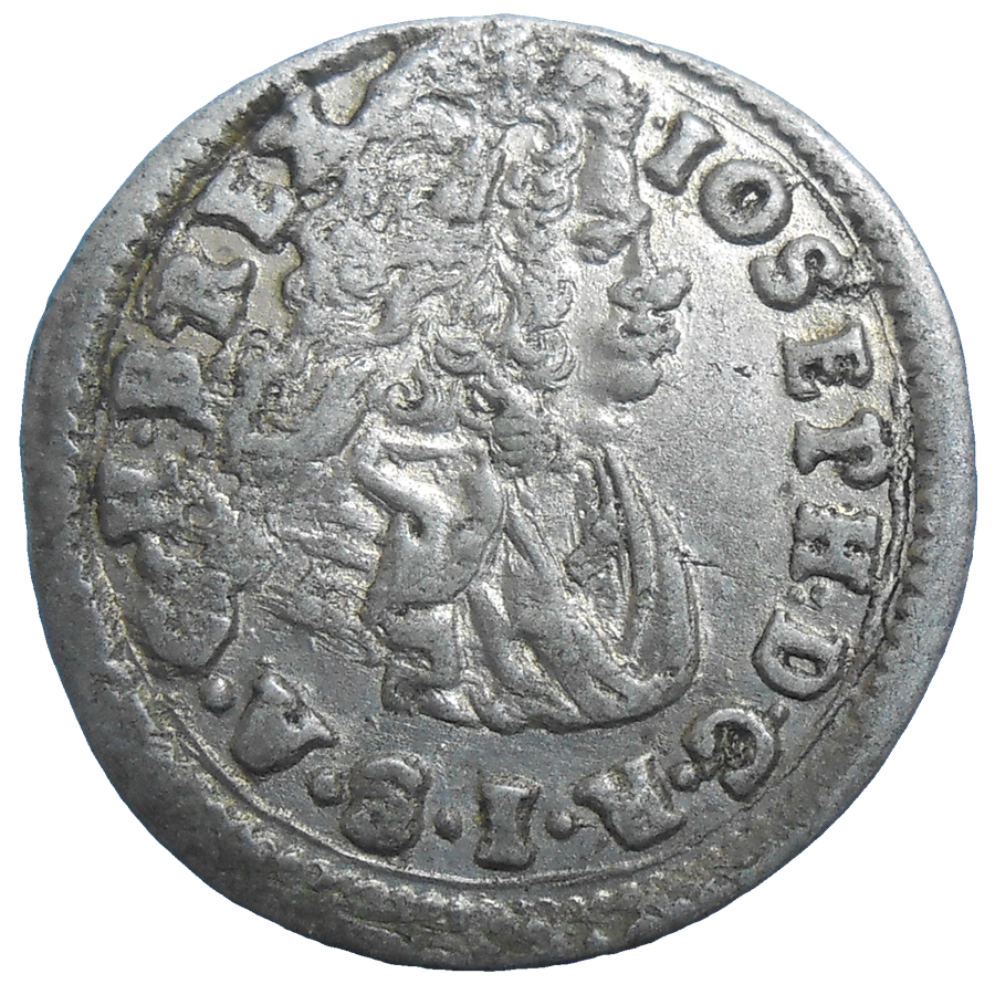 Stará, strieborná, obehová minca Jozefa I. Habsburského v hodnote poltury z roku 1710.