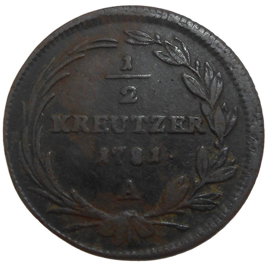 Jozef II. 1/2 grajciar 1781 A. Stará, medená, obehová minca Jozefa II. v hodnote 1/2 grajciaru z roku 1781 - Numizmatický obchod
