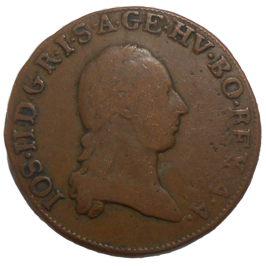 Jozef II. Ein Groeschl 1781 A. Stará, medená, obehová minca Jozefa II. v hodnote grešli z roku 1781 - Numizmatický obchod