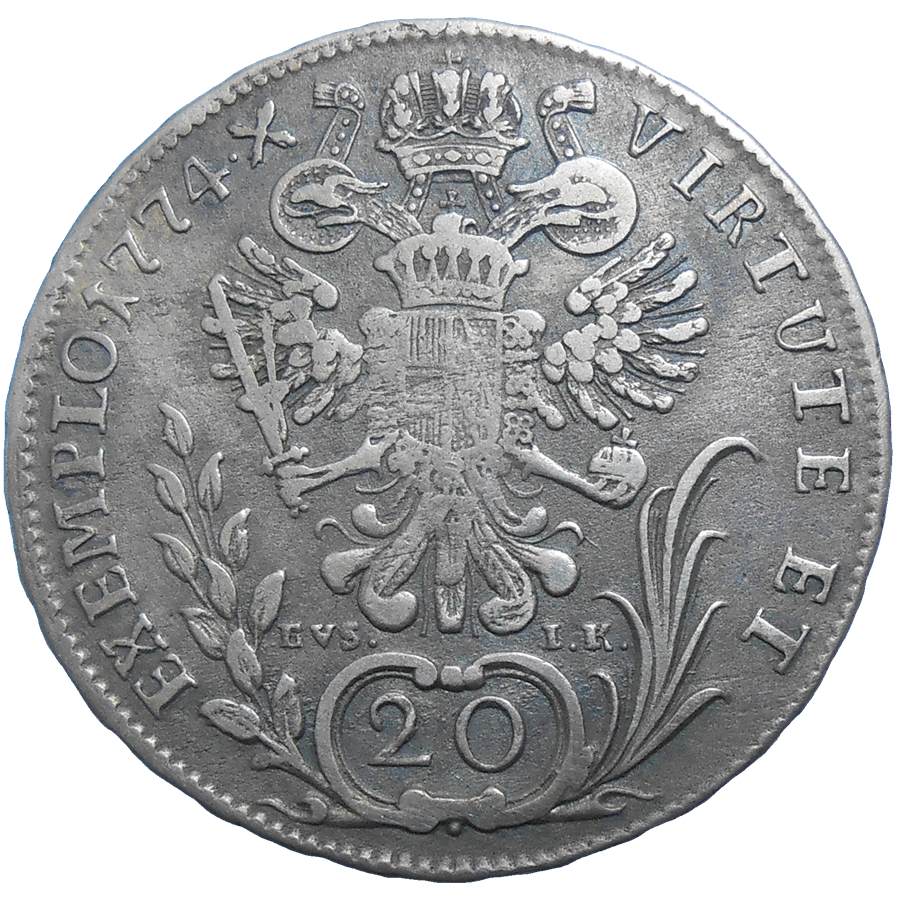 Jozef II. 20 grajciar 1774 C. Stará, strieborná, obehová minca Jozefa II. v hodnote 20 grajciaru z roku 1774 – Numizmatický obchod