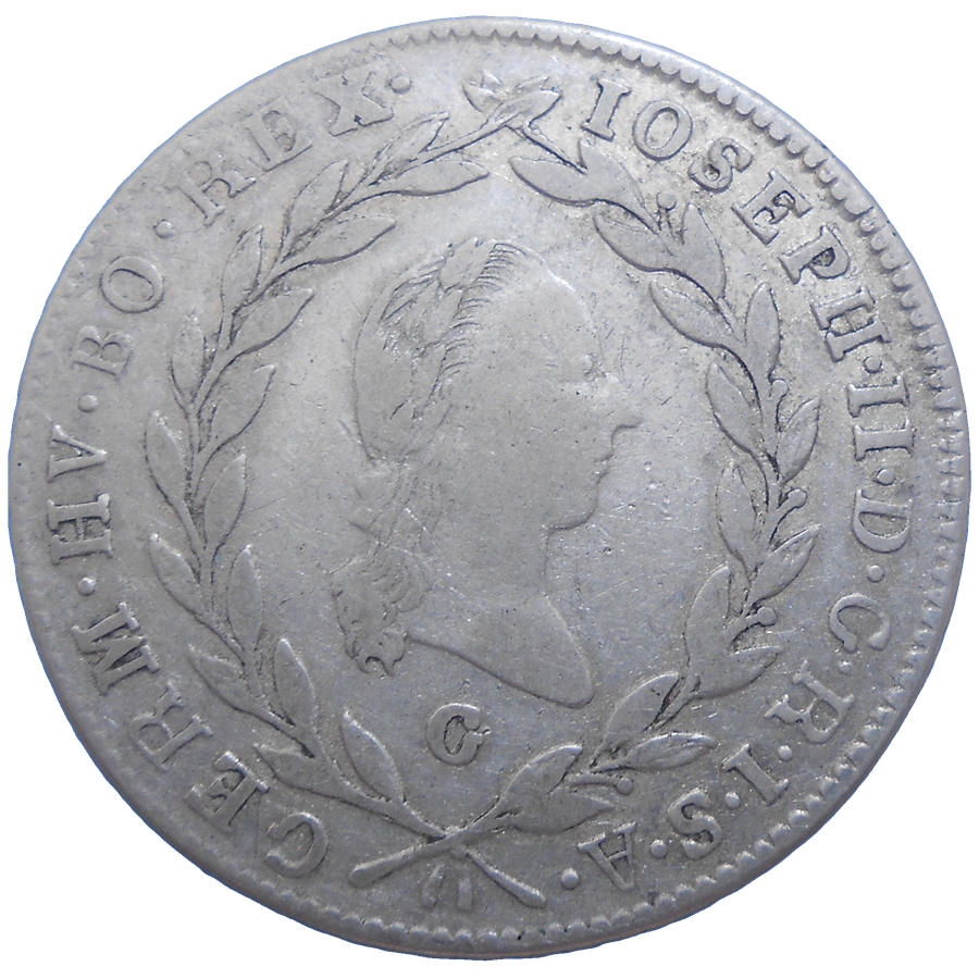 Jozef II. 20 grajciar 1786 G. Stará, strieborná, obehová minca Jozefa II. v hodnote 20 grajciaru z roku 1786 - Numizmatický obchod