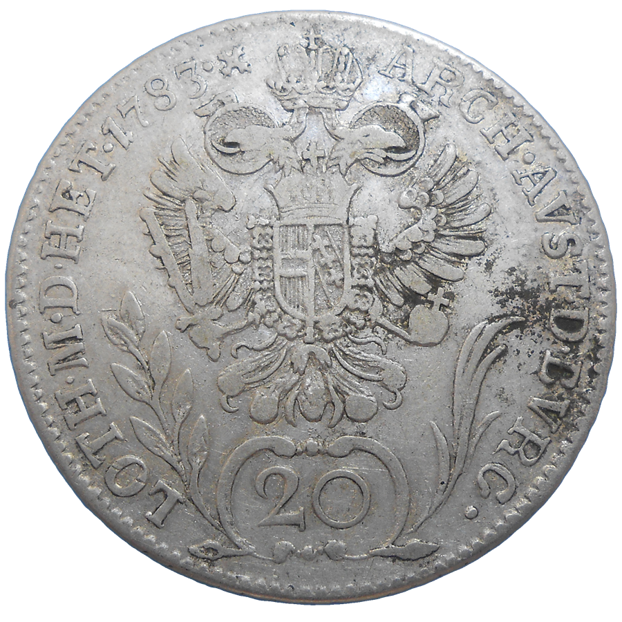 Jozef II. 20 grajciar 1785 G. Stará, strieborná, obehová minca Jozefa II. v hodnote 20 grajciaru z roku 1785 - Numizmatický obchod