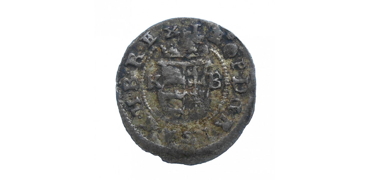 Stará, strieborná, obehová minca Leopolda I. Habsburského v hodnote denáru z roku 1686.
