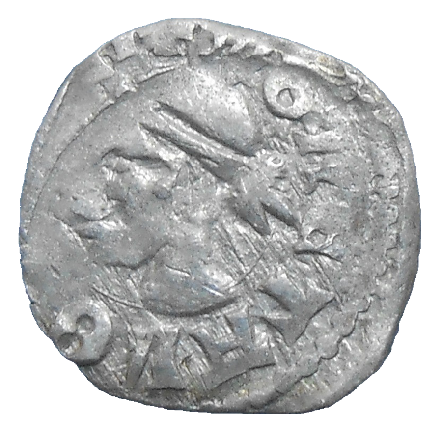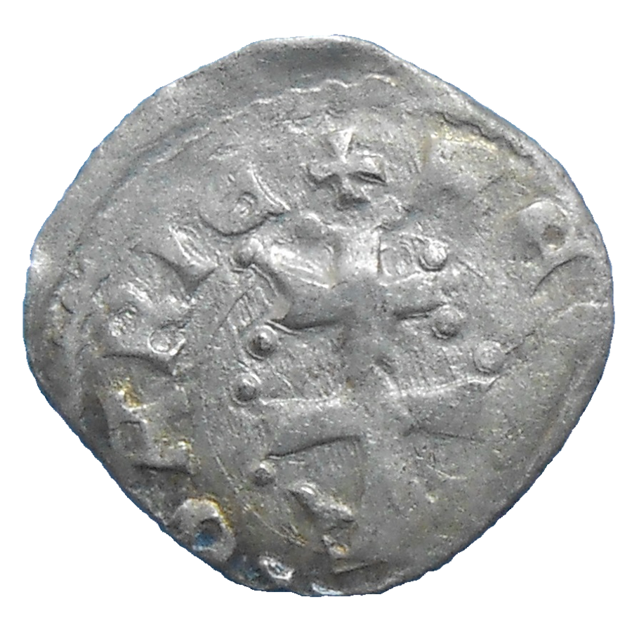 Stará, strieborná, stredoveká minca Ľudovíta I. z Anjou v hodnote denáru zo 14. storočia.