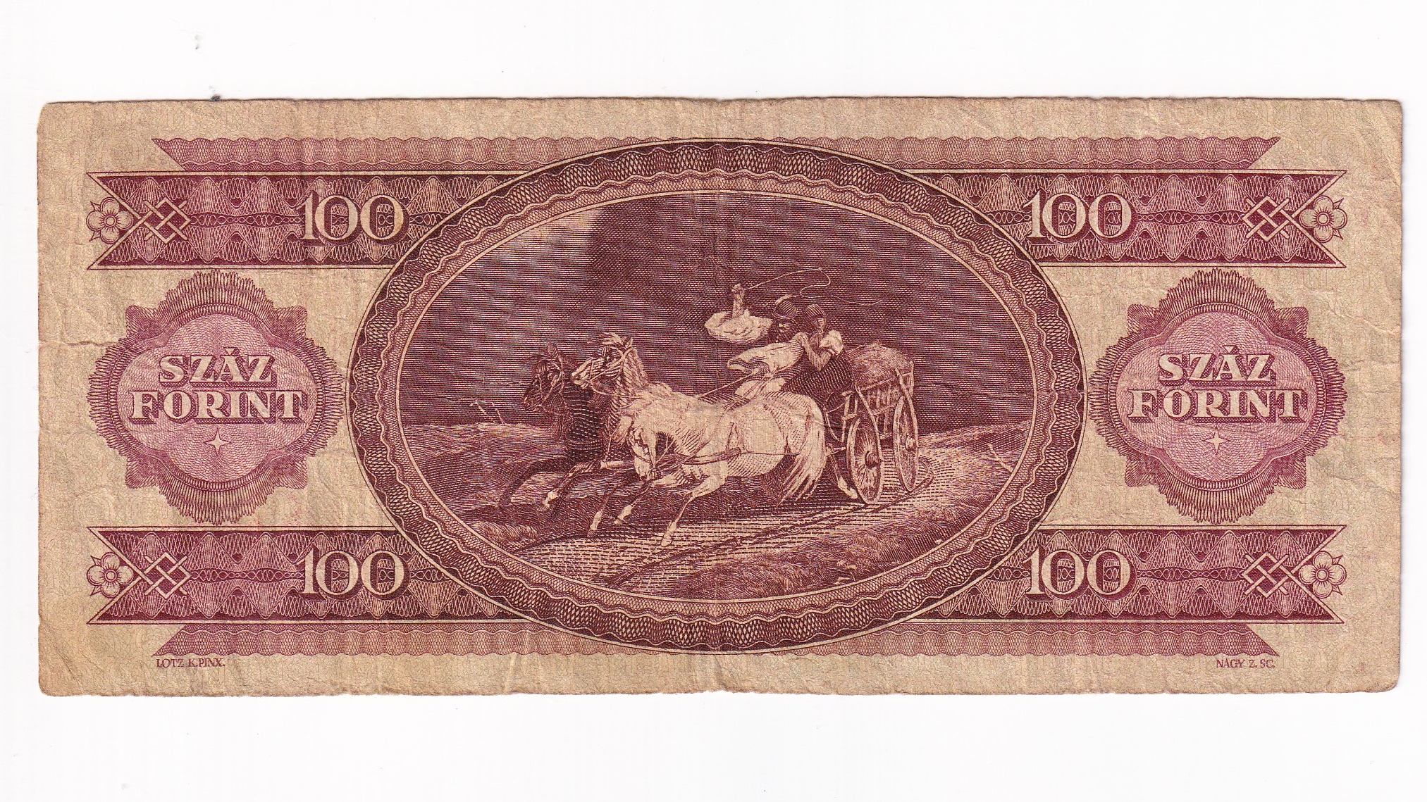 Stará, obehová bankovka Maďarska v hodnote 100 Forint z roku 1993.