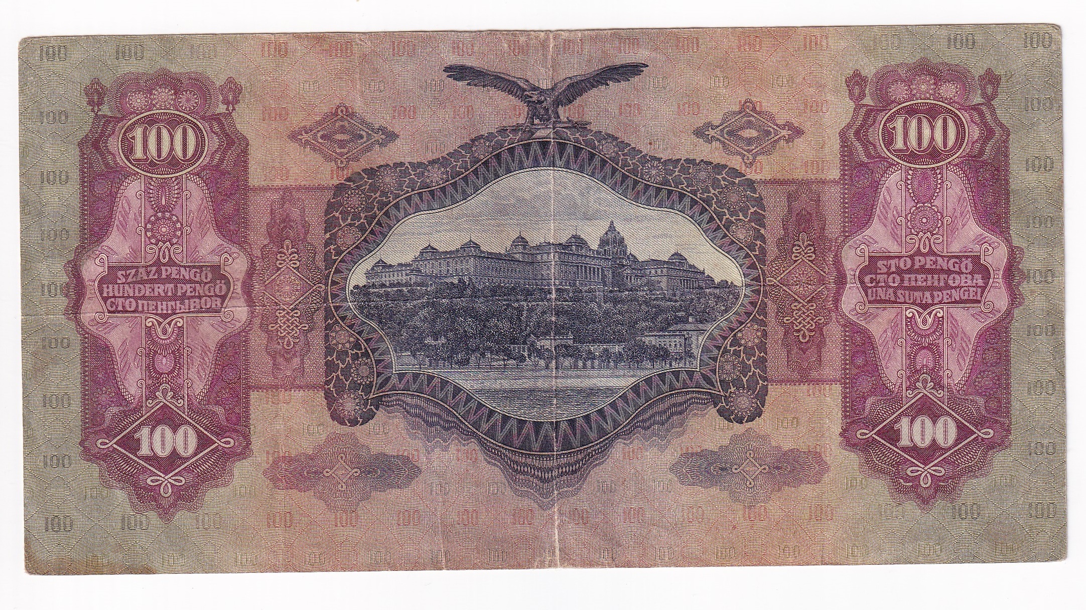Stará, obehová bankovka Maďarska v hodnote 100 Pengo z roku 1930.