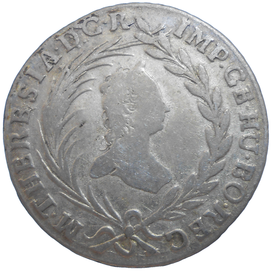 Stará, strieborná, obehová minca Márie Terézie v hodnote 10 grajciaru z roku 1764.