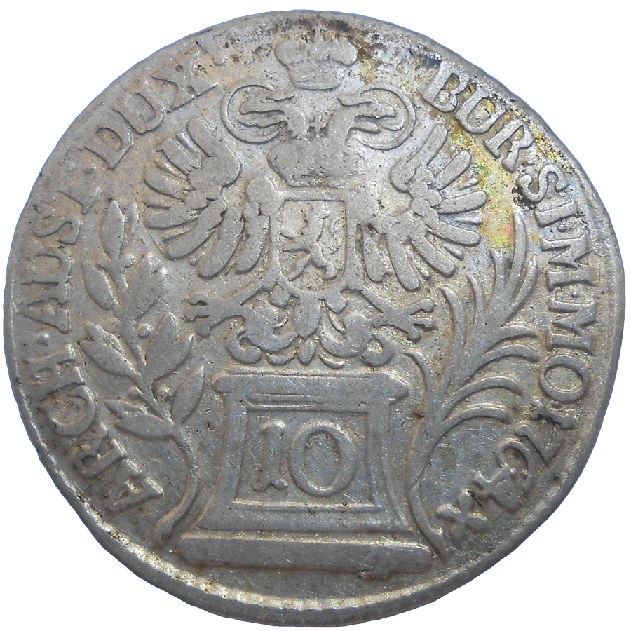 Mária Terézia 10 Denár 1742 Stará, strieborná, obehová minca Márie Terézie v hodnote 10 Denáru z roku 1742. Veľmi vzácna