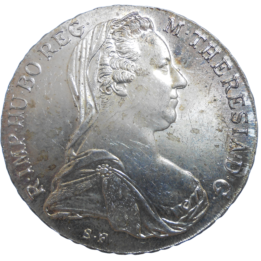 Mária Terézia Toliar 1780 SF. Strieborná novorazba viedenskej mincovne levantského toliaru Márie Terézie – Numizmatický obchod