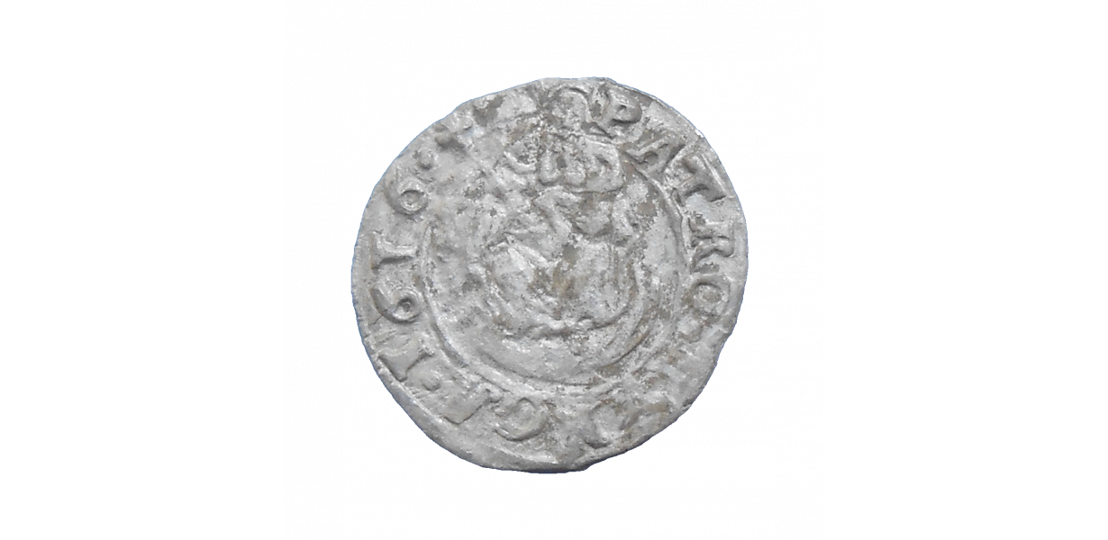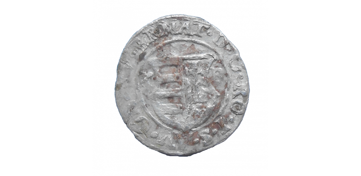 Stará, strieborná, obehová minca Mateja II. Habsburského v hodnote denáru z roku 1616.