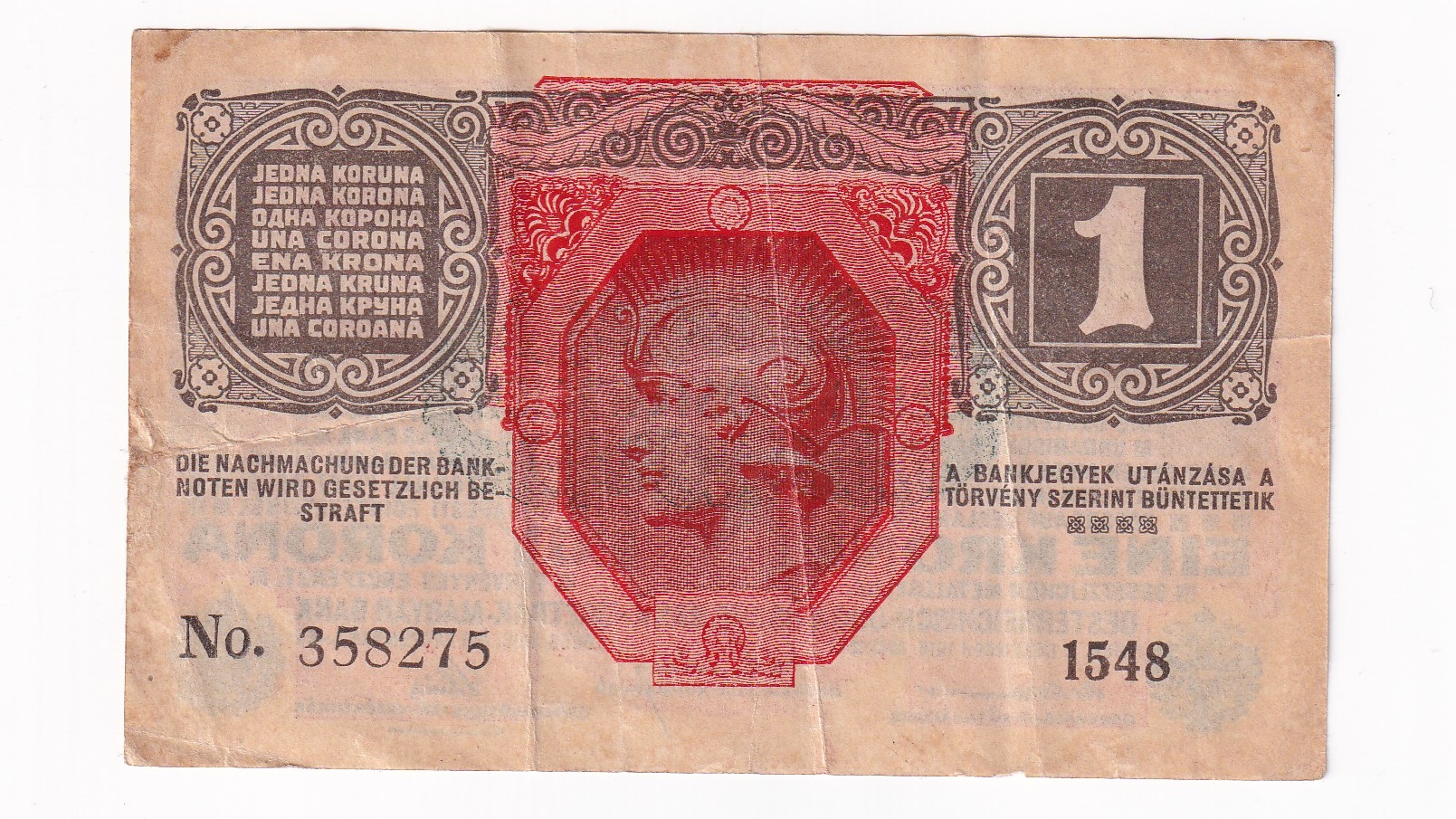 Rakúsko 1 Koruna 1916. Séria 1548 358275. Stará, obehová bankovka Rakúska v hodnote 1 koruny z roku 1916 – Numizmatický obchod