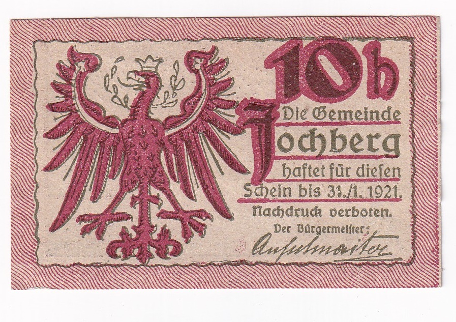 Rakúsko 10 Heller 1921 Stará, obehová núdzová bankovka Rakúska v hodnote 10 heller z roku 1921. Obec Jochberg. Na označenie zachovalosti... Viac informácií ...