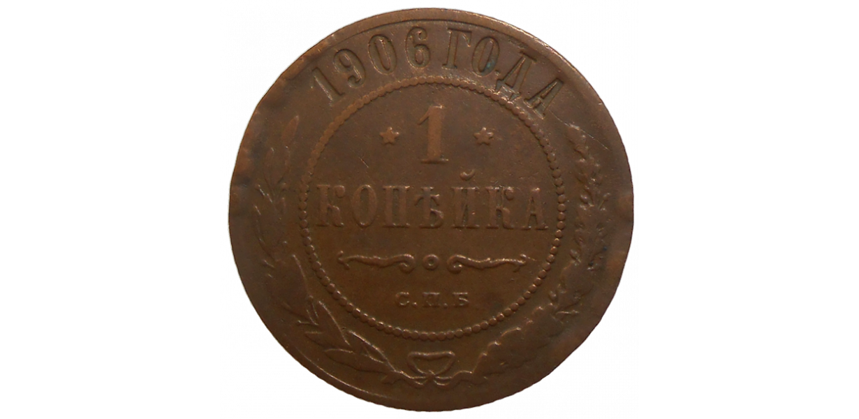 obehová minca cárskeho Ruska v hodnote 1 Kopejky z roku 1906 – Numizmatický obchod
