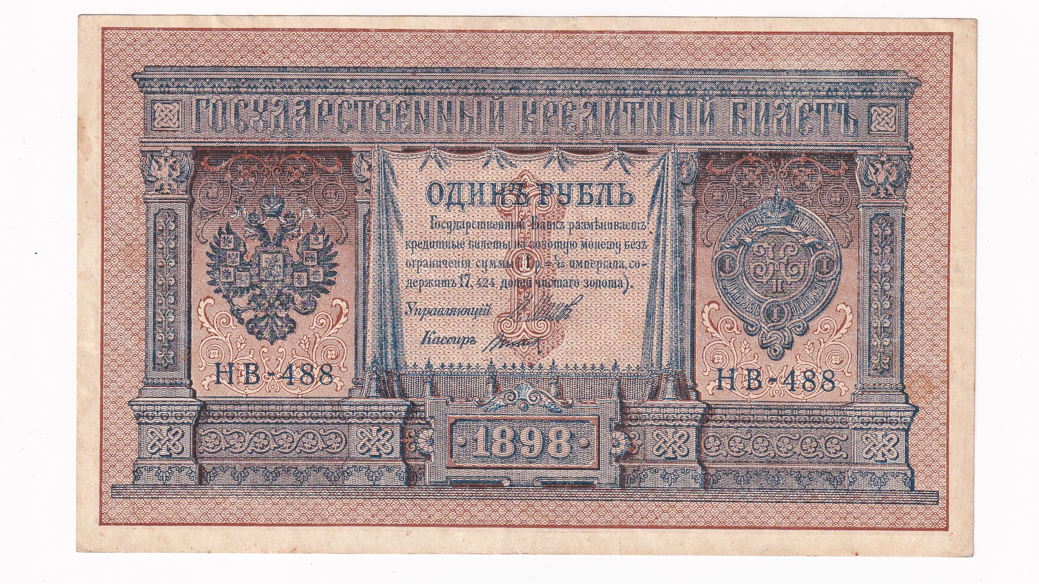 Rusko 1 Rubeľ 1898. Séria NV 488. Stará, obehová bankovka Ruska v hodnote 1 Rubľa z roku 1898 – Numizmatický obchod