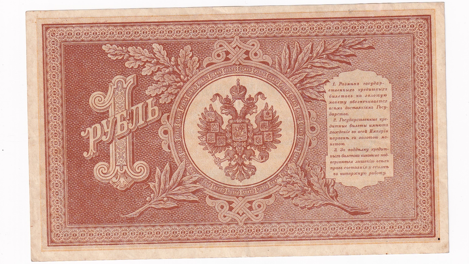 Stará, obehová bankovka Ruska v hodnote 1 Rubľa z roku 1898.