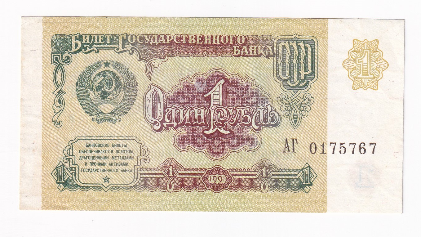 Rusko 1 Rubeľ 1991. Séria AG 0175767. Stará, obehová bankovka Ruska v hodnote 1 Rubľa z roku 1991 – Numizmatický obchod