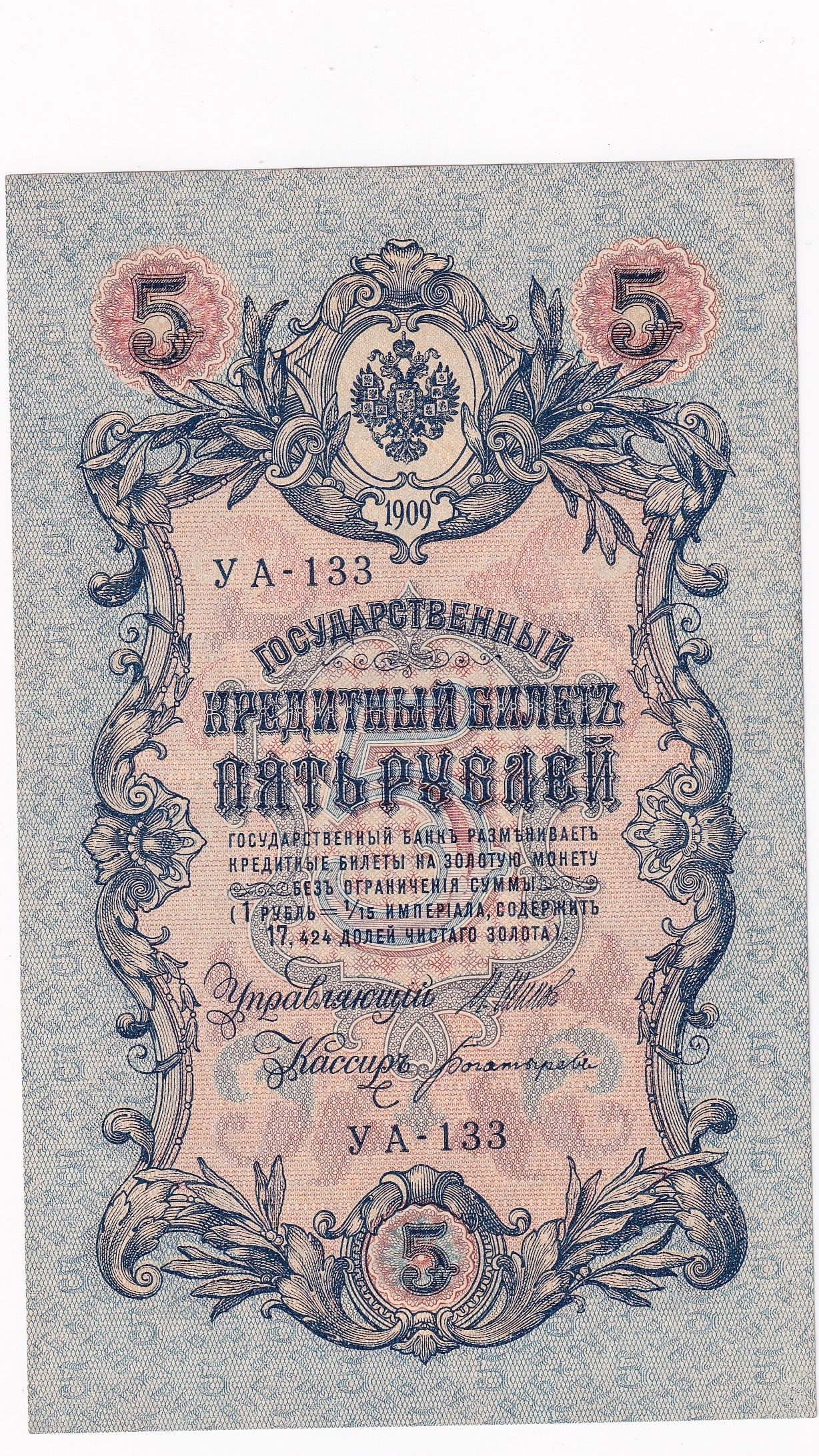 Rusko 5 Rubľov 1909