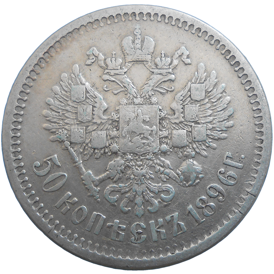 Rusko 50 Kopejka 1896. Stará, strieborná, obehová minca Ruska v hodnote 50 kopejky z roku 1896 – Numizmatický obchod
