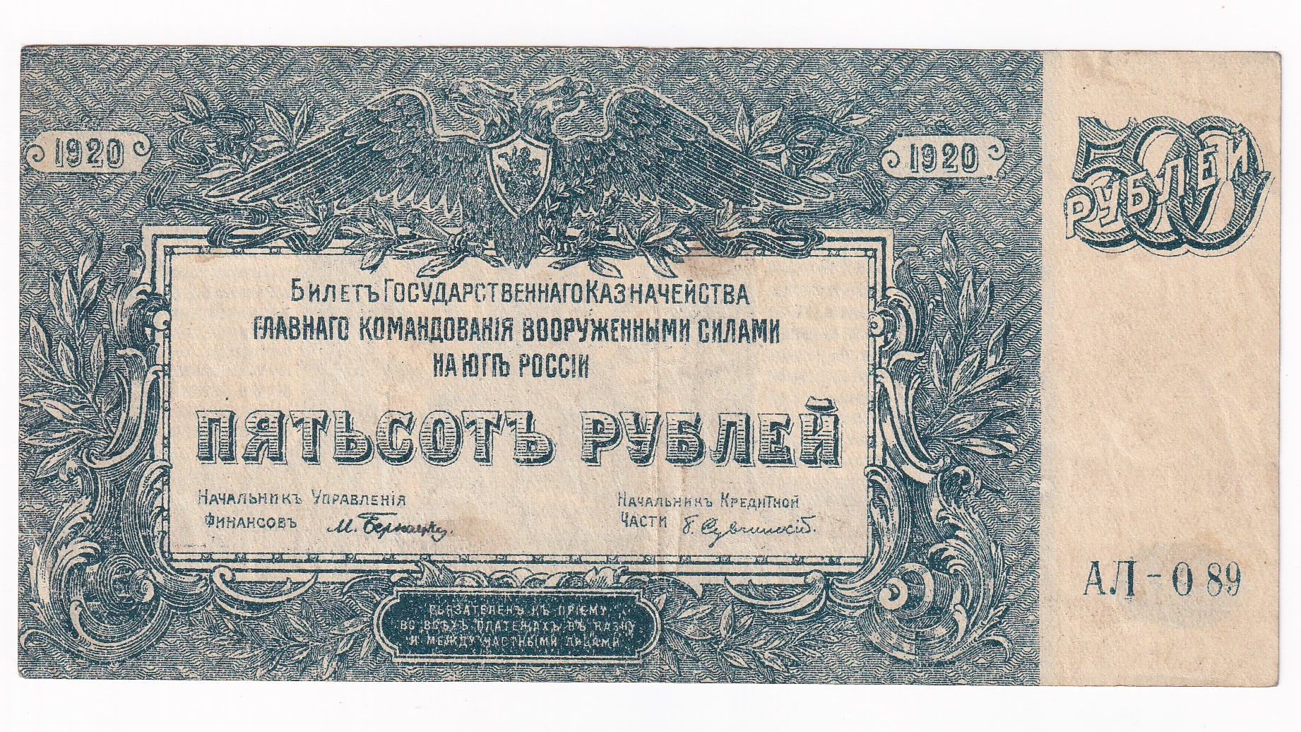 Rusko 500 Rubľov 1920. Séria AI 089. Stará, obehová bankovka Ruska v hodnote 500 Rubľov z roku 1920 – Numizmatický obchod