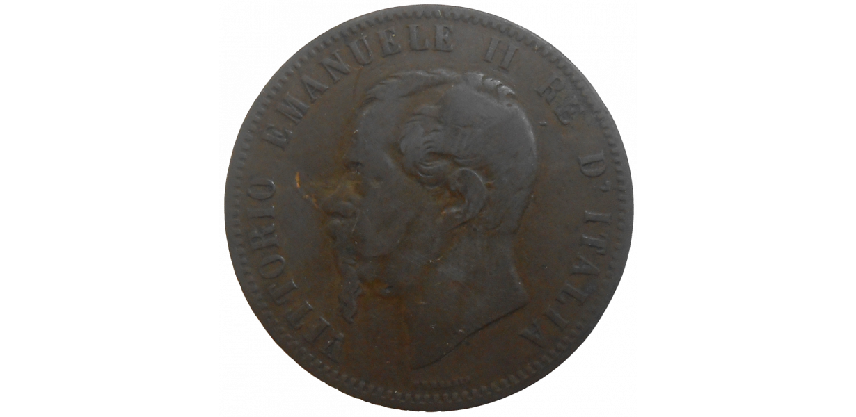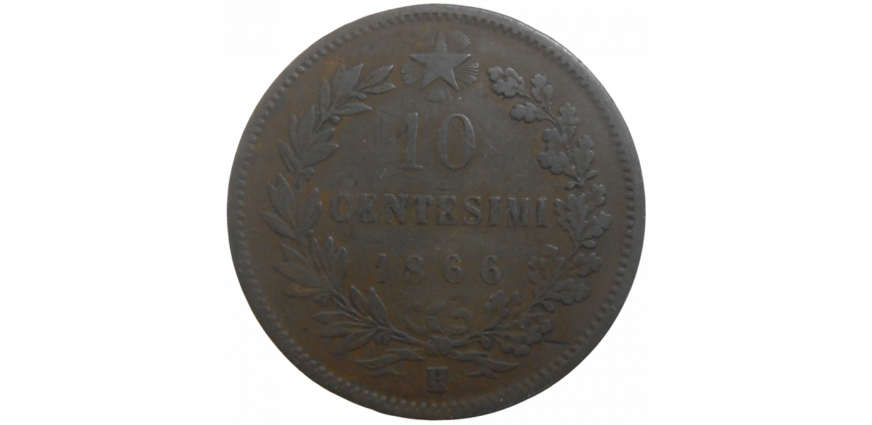 Stará, obehová minca Talianska v hodnote 10 Centesimi z roku 1866.