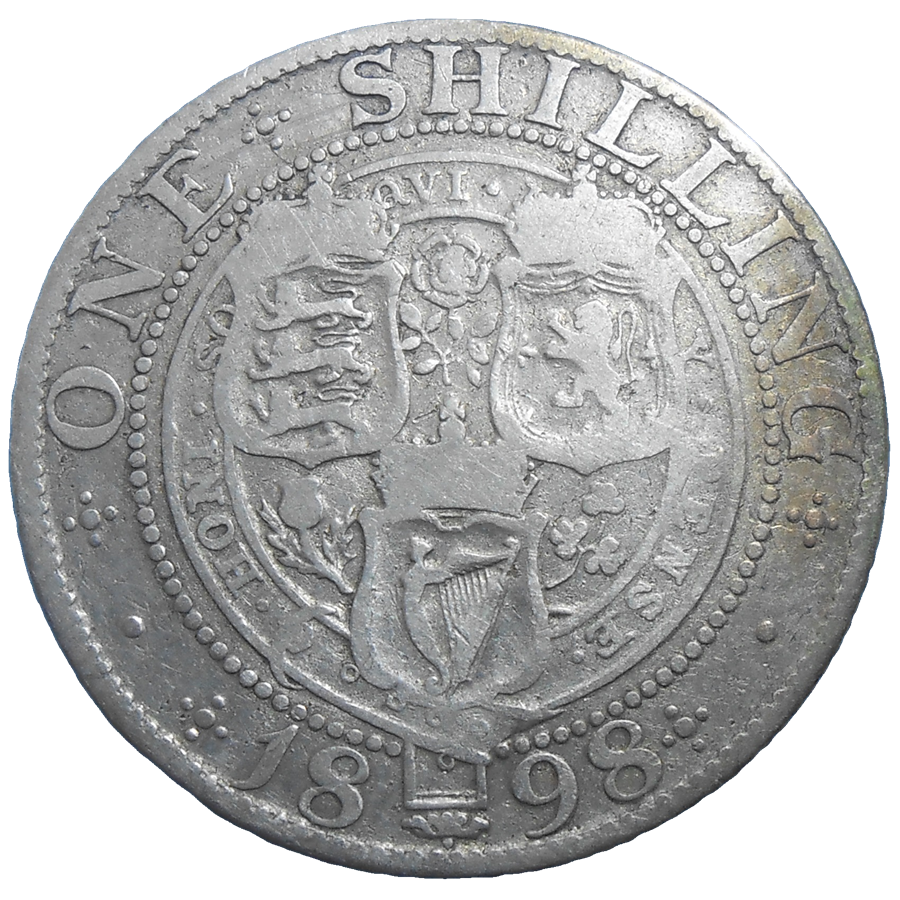 Veľká Británia 1 Shilling 1898. Stará, strieborná, obehová minca Veľkej Británie v hodnote 1 shilling z roku 1898 – Numizmatický obchod