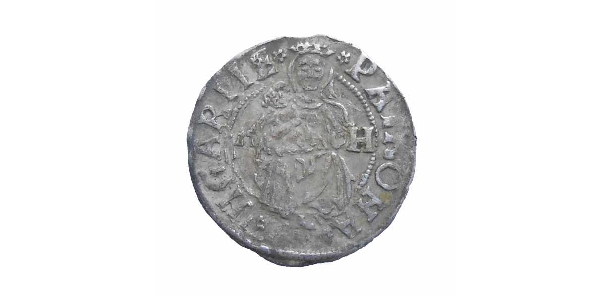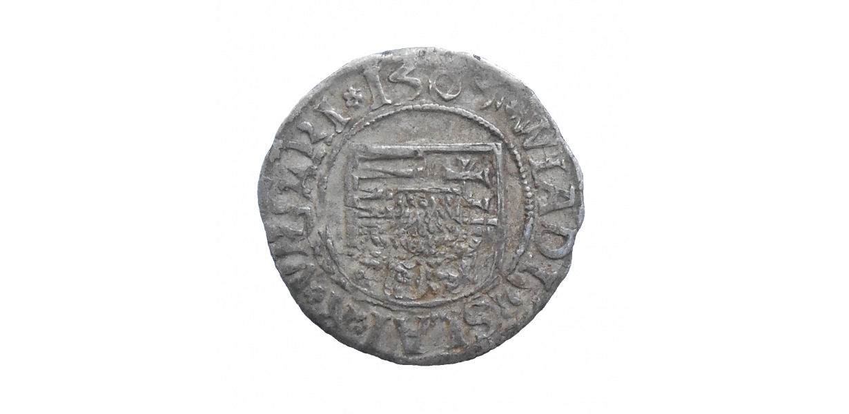 Stará, strieborná, stredoveká minca Vladislava II. Jagelovského v hodnote denáru z roku 1505.