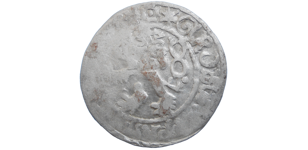 Stará, strieborná, obehová minca Vladislava II. Jagelovského v hodnote pražského grošu z 15. storočia.